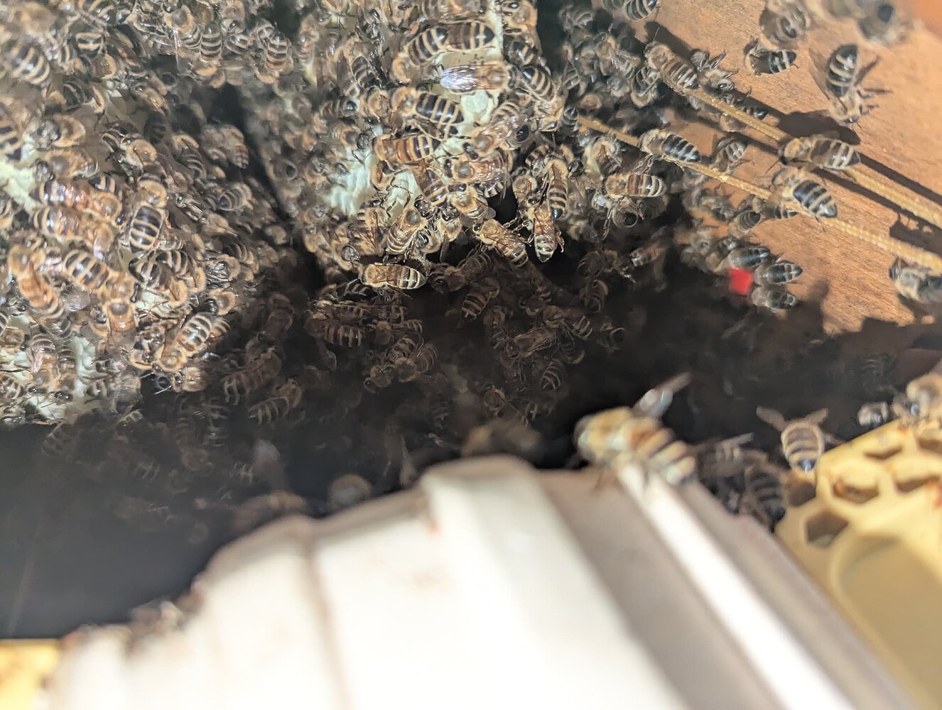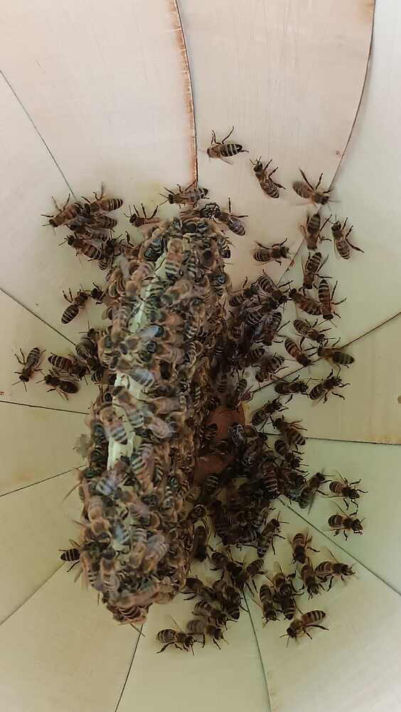 I observed a behavior on the outer hive of the HIIVE that I have only observed in natural honey bee colonies from a tree cavity: Some honey bees responsible for collecting nectar and pollen in my colony were no longer foraging , but engaged in social gromming. This means that the honey bees rid each other of mites. This behavior has been seen where the bees live in a natural environment and have not been enslaved to produce large quantities of honey for humans. This means that my bees have a security of supply from honey and have more time to groom than to ensure a security of supply from honey in the hive. I hope you enjoyed reading my text and I will keep you updated this year.